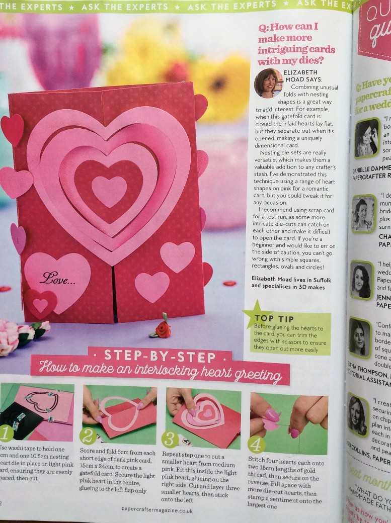 Three of my projects are in this issue of PaperCrafter magazine issue 107 - interlocking hearts using die cuts on page 82, paper bead card page 32 and another chance to see my quilled tulips on pages 72 and 73.